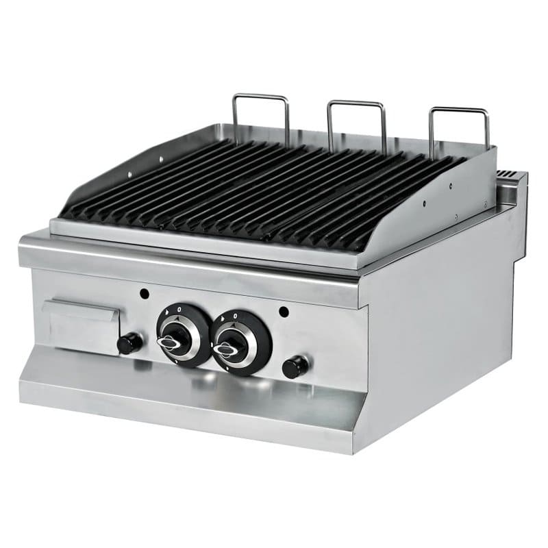 Barbacoa profesional de piedra volcánica a gas de 2 válvulas de 600 mm – sobremesa