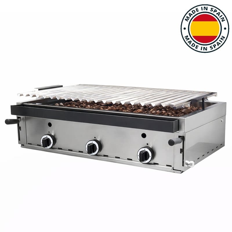 Seis quemadores de acero inoxidable tubular polidoro que proporciona una potencia combinada de 18,9 kW, regulados por tres válvulas.