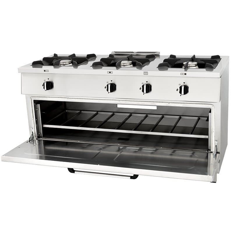 Cocina horizontal industrial de 3 quemadores con horno 1200x600x850 – Serie Magma