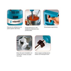 El Triturador Compacto TVF-250 de Edenox, ligero y manejable, permite preparar potajes, sopas, purés de verduras y salsas.