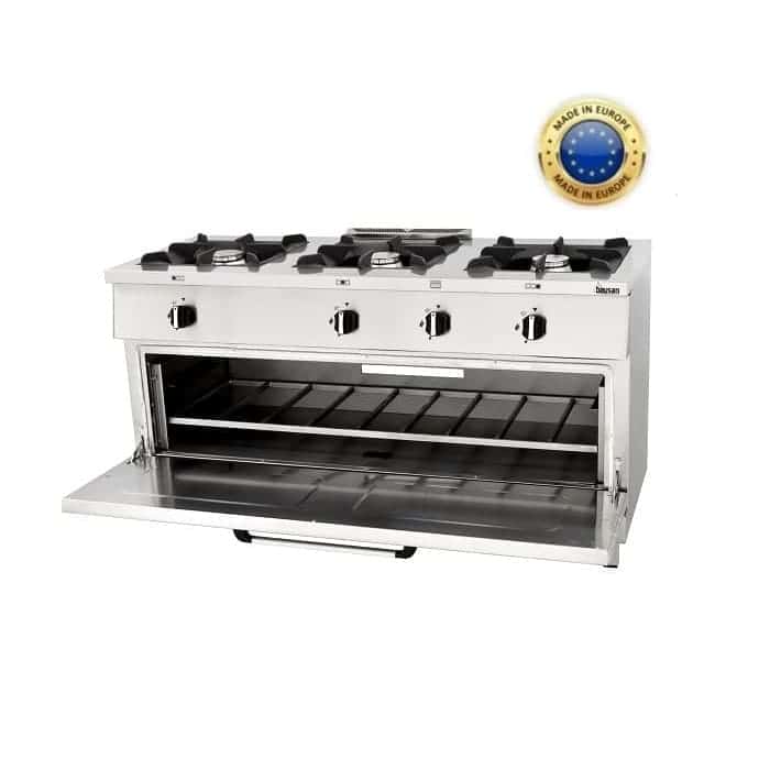 Estas cocinas a gas son perfectas para su uso en la hostelería. Tienen una estructura de acero inoxidable. Sus parrillas son de hierro fundido esmaltado negro resistente a los ácidos para su eficaz limpieza. Tiene quemadores de hierro fundido con llama estabilizada.