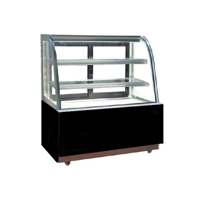 Esta vitrina expositora de cristal curvo de 2 estantes con termostato digital además de cumplir la función principal de mantener los alimentos, hace la función de exhibidor, un aspecto muy importante ya que atrae la atención de los clientes. También, protege los productos del polvo y los aleja del alcance de personas poco cuidadosas y del público en general.
