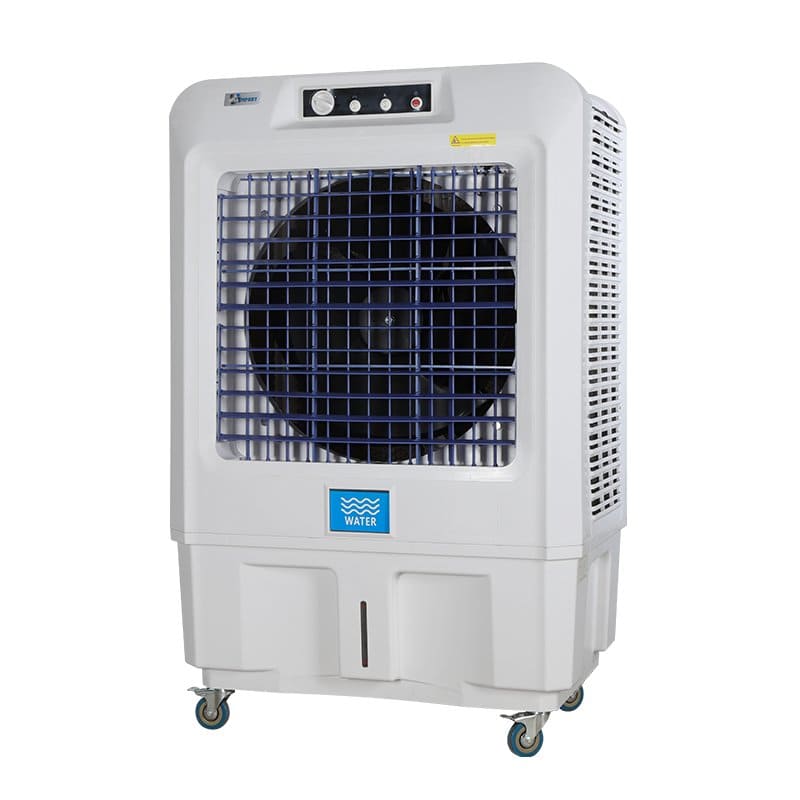 Enfriador Evaporativo SJ260 26,000 m³/h – Alto rendimiento con 0.55 kW de potencia, capacidad de 120L y dimensiones de 900x600x1400 mm. Ideal para espacios amplios, garantizando frescura con eficiencia energética.