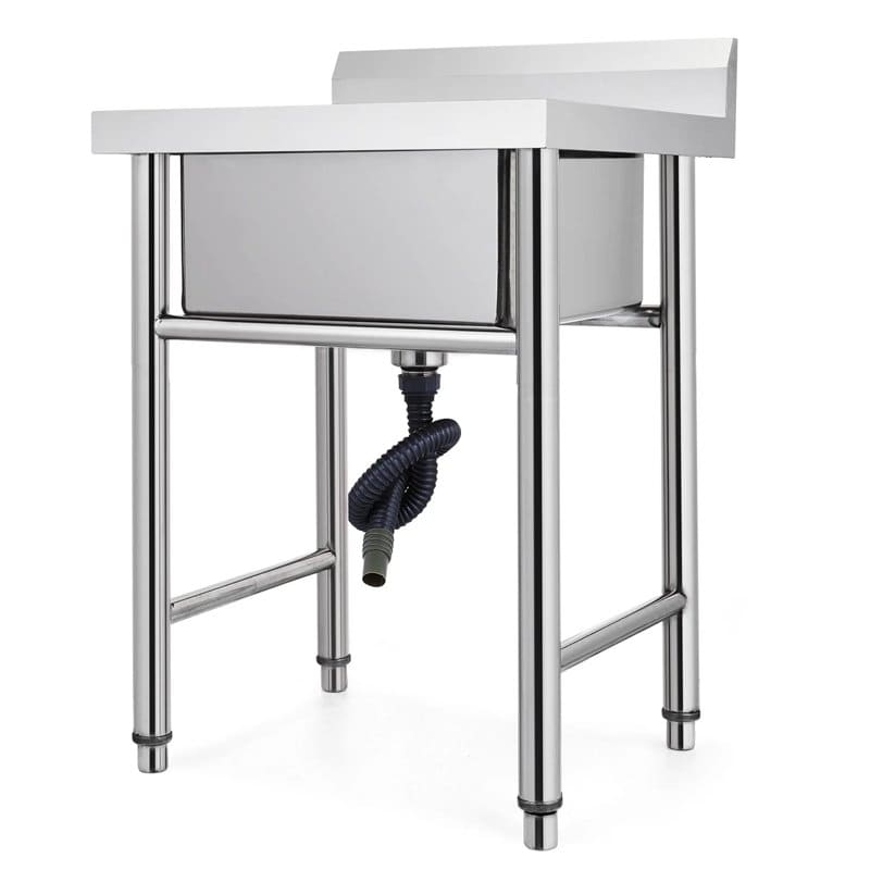 Fregadero de 1 seno HJS-601 con fondo de 500 mm, ideal para un uso práctico y eficiente. El seno tiene medidas de 400x470x250 mm y el conjunto completo de 500x500x850+100 mm, ofreciendo resistencia y funcionalidad en espacios de cocina profesional.
