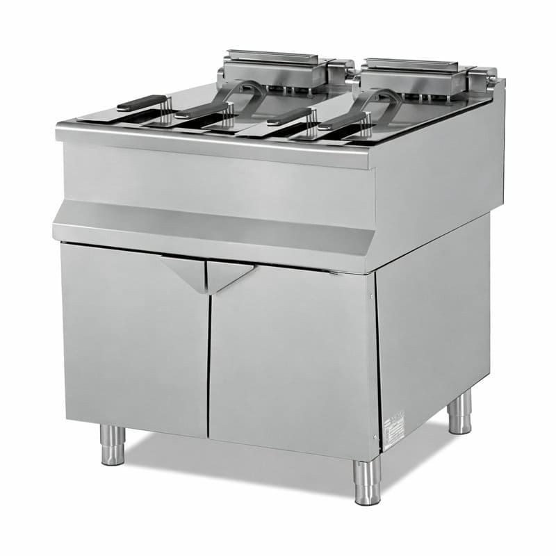 Eficiencia y precisión en tu cocina: Esta freidora a gas de 23,5 Kw, combina potencia y practicidad, garantizando una cocción rápida y profesional. Tiene unas medidas ideales de 800X730X850 mm y una capacidad de 18+18 litros fabricacion Europea.