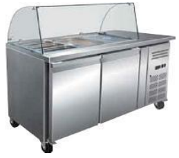 Mesa de preparación refrigerada con hueco para cubetas y cristal curvo de 314 litros