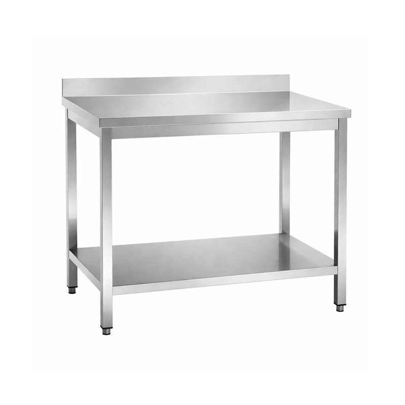 Descripción Corta: Optimiza tu espacio con esta mesa de trabajo mural MTMPF08CB de 800x600x970 mm, fabricada en acero inoxidable y equipada con un estante inferior para un almacenamiento práctico. ¡Resistente, higiénica y perfecta para cocinas y entornos profesionales!