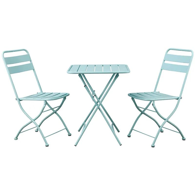 Set de mesa y sillas plegables fabricado en acero resistente, ideal para terrazas, balcones y espacios exteriores. Su diseño compacto y ligero facilita el transporte, el almacenaje y el uso diario. Disponible en varios colores y listo para usar gracias a su montaje terminado.