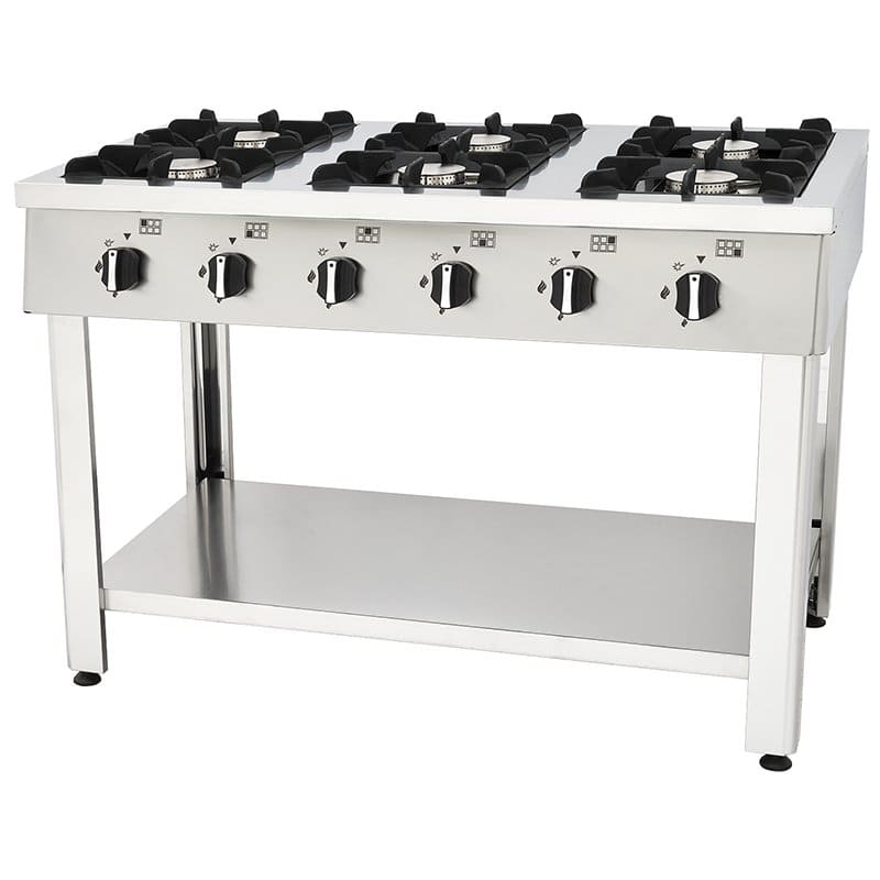 Cocina industrial de 6 quemadores con estante 1200x700x850 – Serie Magma
